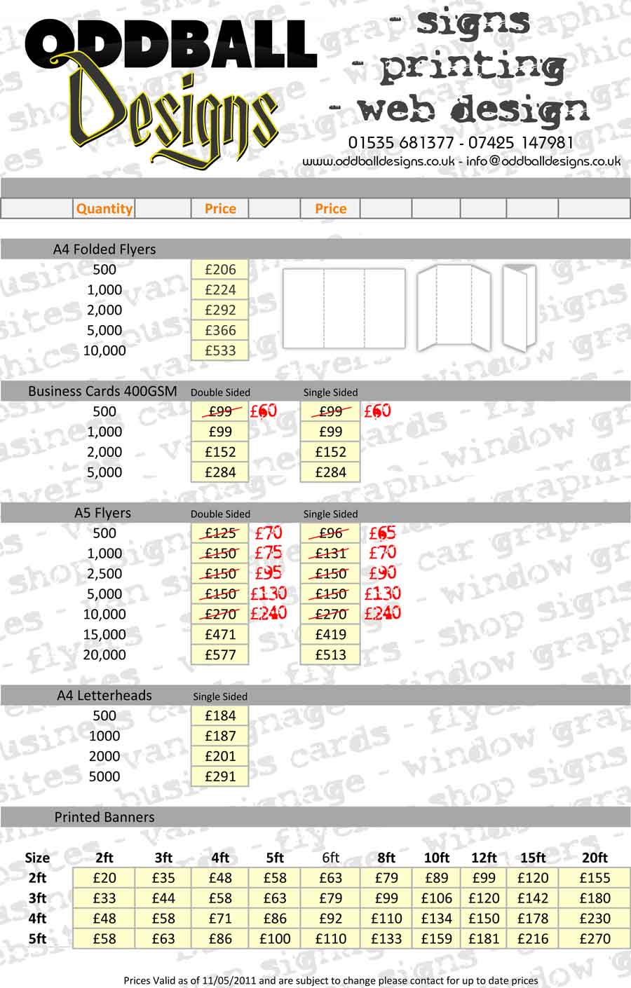 We can supply printed leaflets, flyers and business cards.
